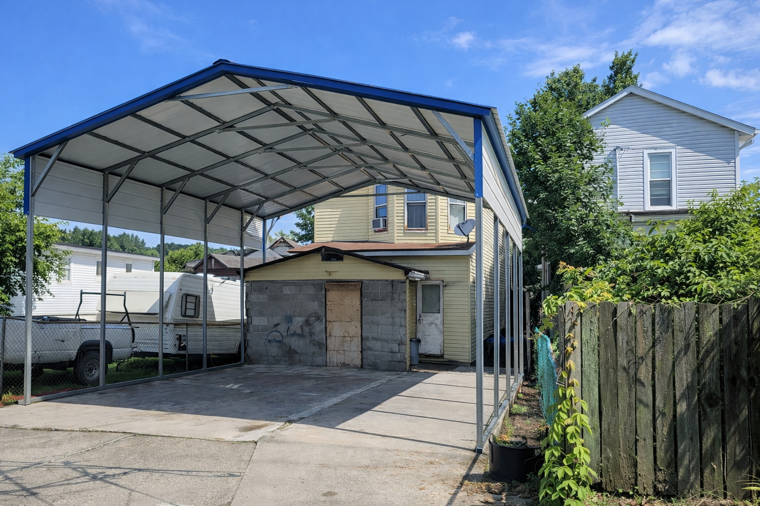 A Hopkinsville KY Metal Carport offers a significant advantage when protecting your vehicles and equipment. These sturdy structures shield against harsh weather conditions, including rain, snow, wind, and harmful UV rays from the sun. A Hopkinsville KY Metal Carport can help you save money on costly repairs by reducing the risk of damage. Plus, storing your valuable investments in a Hopkinsville KY Metal Carport can help extend their lifespan, ultimately saving you money by reducing the need for premature replacements. Choose a Hopkinsville KY Metal Carport Metal Carport for unbeatable protection and long-term savings.