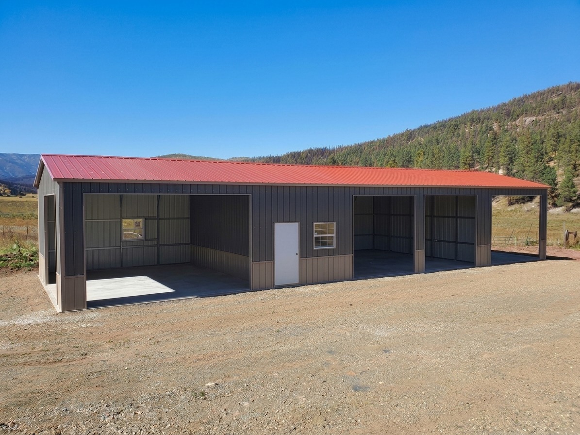 | Options | (3) Fully Enclosed - Vertical Partition Wall (1) Vertical Gable (2) 36" x 80" Walk In Door (2) 36"x36" Single Pane Window (1) 16' x 10' Frame Out (2) 12' x 10' Frame Out (2) 10' x 10' Frame Out Full Wainscot |
