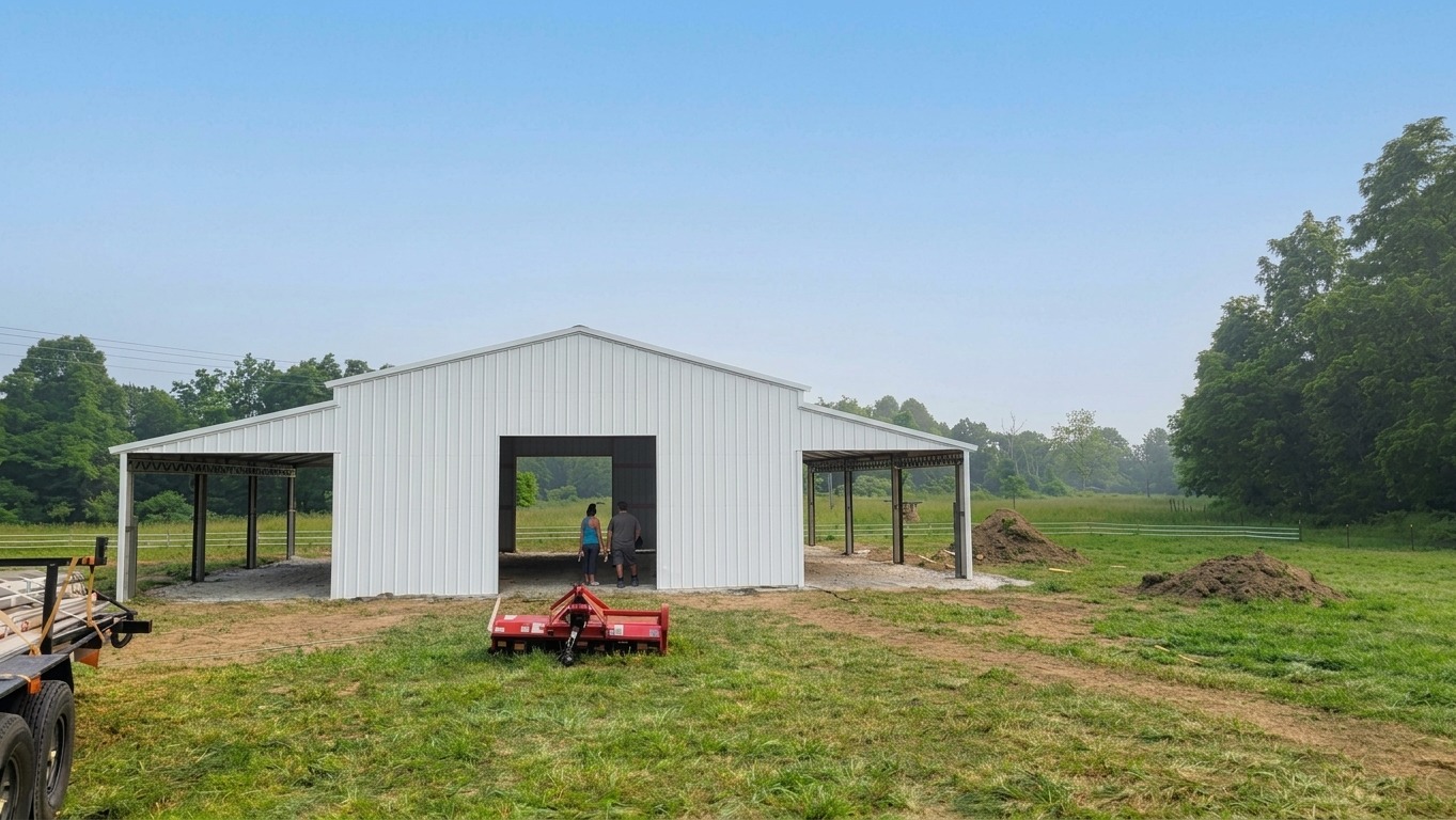 When considering barn options in Peoria IL Metal Barn, the comparison between metal barns, particularly the Peoria IL Metal Barn, and traditional pole barns is essential. The distinct difference is evident in their construction. Pole barns utilize wood poles and other framing materials, while the Peoria IL Metal Barn structures are primarily made of steel. Even if a pole barn features metal sheeting on the exterior, its core wooden structural components necessitate being extra durable, potentially incurring future expenses. On the other hand, metal barn buildings, like the Peoria IL Metal Barn, use robust 14- or 12-gauge steel tube framing, ensuring unparalleled strength and resilience. The Peoria IL Metal Barn not only stands out in fire and weather resistance but also lays the foundation with superior quality materials. Moreover, the Peoria IL Metal Barn building requires minimal maintenance over its lifespan, translating to significant cost savings.